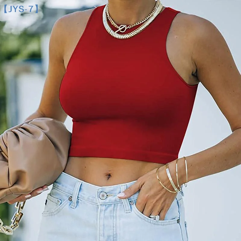 Round Neck Women Summer Cloth Sexy Fashion Simple Solid Color Sleeveless Camisole Tight Stretch Streetwear